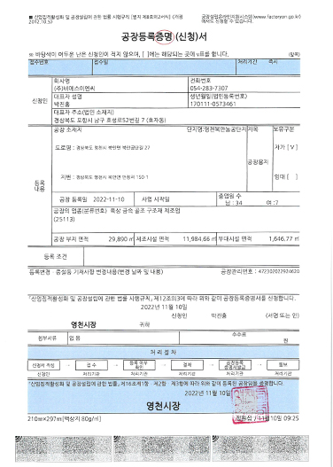 [영천공장] 경북 영천시 북안면 북안공단길 27(북안면 반정리 150-1)