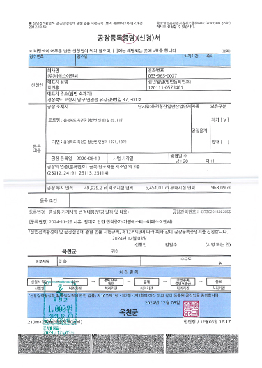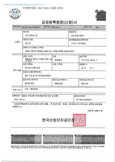 [충주공장] 충북 충주시 소태면 구룡로 692-29[옥천공장] 충북 옥천군 청산면 인정 1길 89